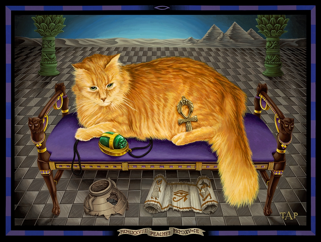 “Peaches” by Anthony Purcell approx. 16″ x 20″ acrylic on wood cutting board