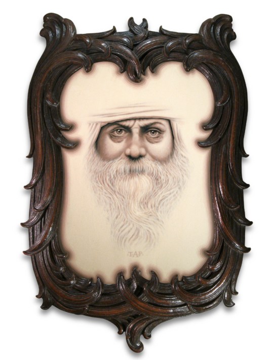 “the lord of the mountain”, acrylic painting with antique frame