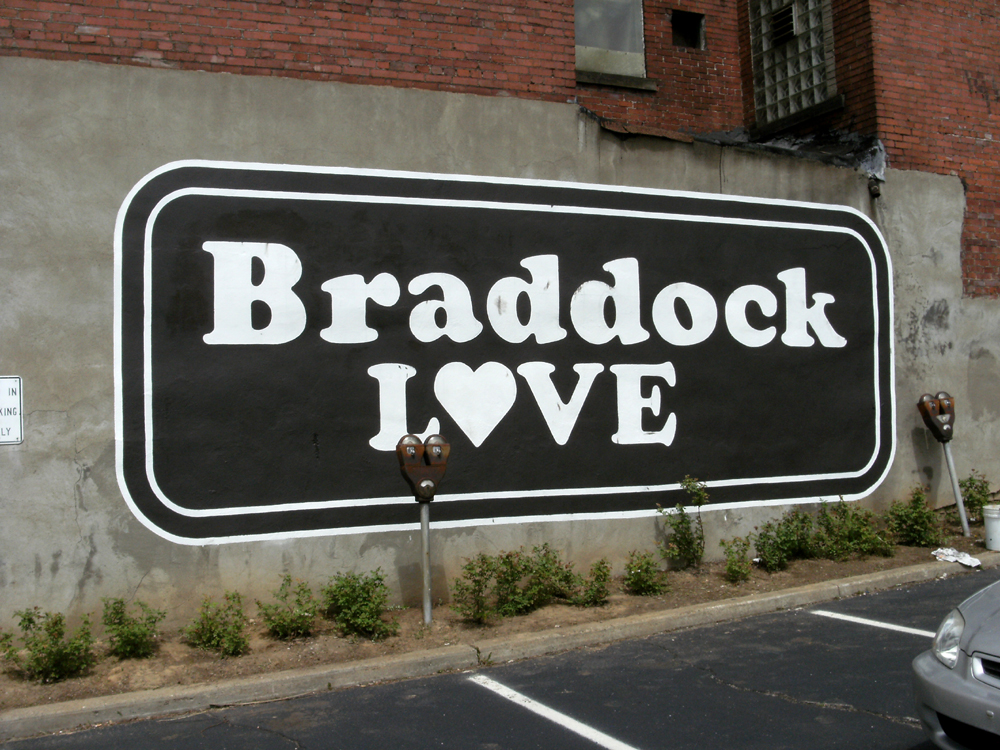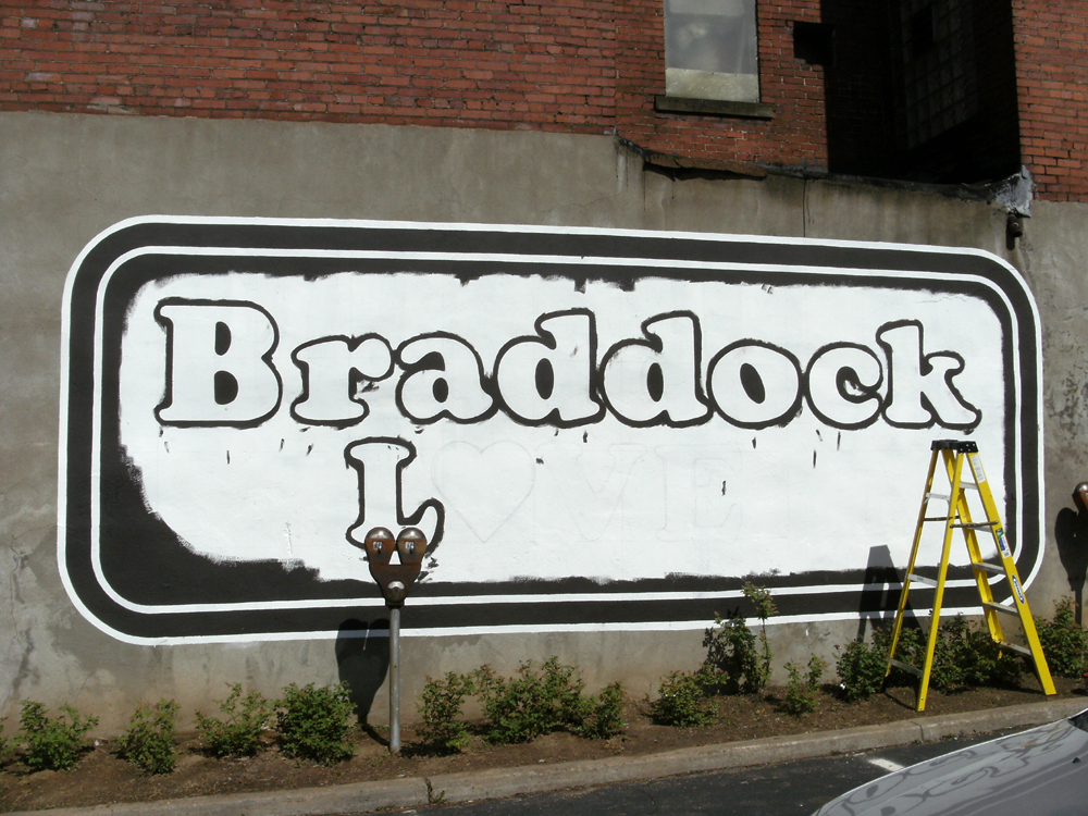 “Braddock Love”, hand-painted sign, design by Gisele Barretto Fetterman