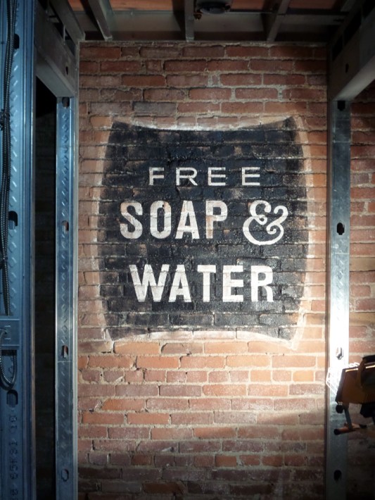 Emporio hallway: hand-painted sign