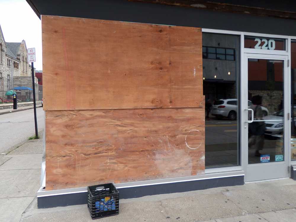 oops! a vehicle crashed into the front of Union Pig and Chicken