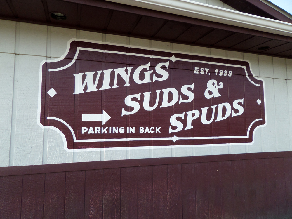 Wings Suds & Spuds, hand-painted sign, Moon Township…