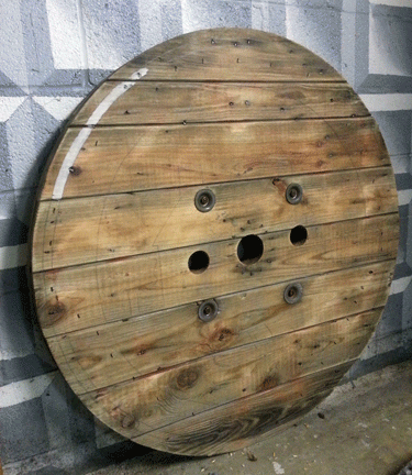 Hand-painted logo on wooden cable spool, Allegheny City Brewing…