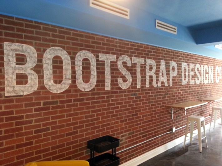 Wordmark logo painted on brick, Bootstrap Design Co., Pgh…