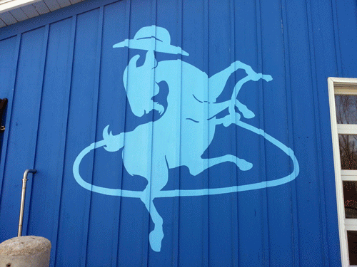 Logo painting on wooden barn siding, Goat Rodeo Farm & Dairy, Pittsburgh Penna…