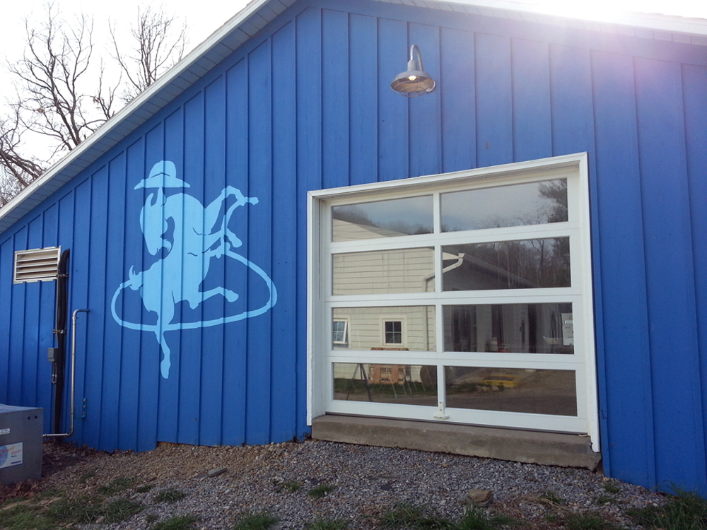 Logo painting on wooden barn siding, Goat Rodeo Farm & Dairy, Pittsburgh Penna…