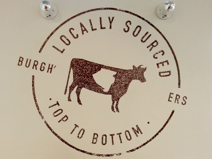 Many small dots, stipple painting a logo, Burgh’ers, Lawrenceville..