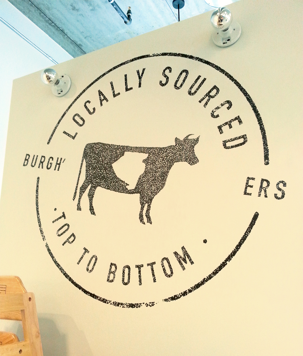 Many small dots, stipple painting a logo, Burgh’ers, Lawrenceville..
