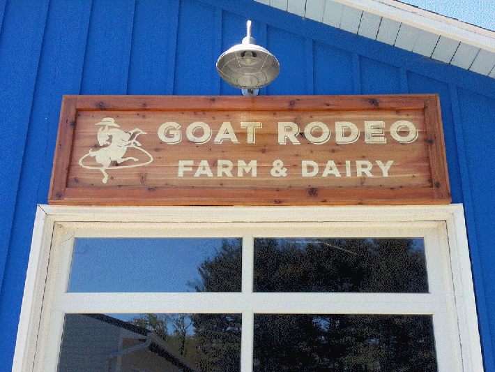 Hand-made cedar wood sign & logo painting, Goat Rodeo, Farm & Dairy…