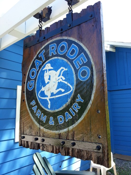 Swinging blade sign with hand-painted logo, Goat Rodeo Farm & Dairy, Pittsburgh…
