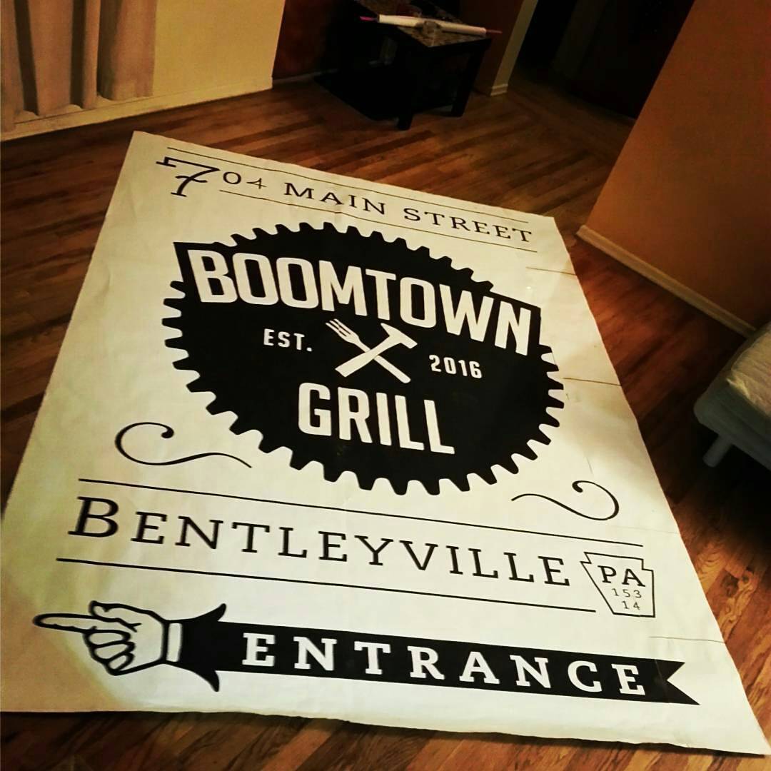 ← Hand-painted outdoor sign on brick, Boomtown Grill, Bentleyville, Pa…