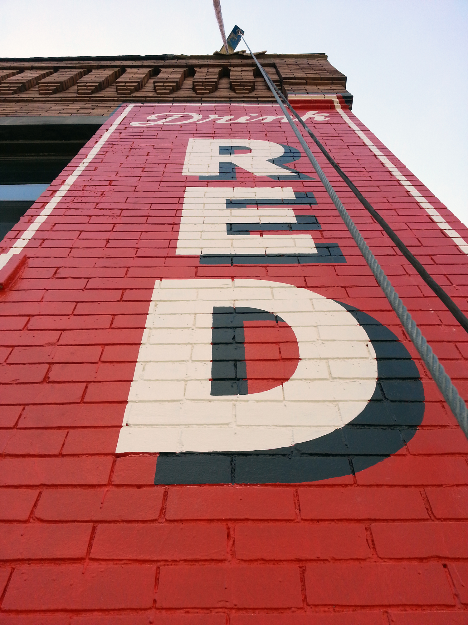 ← Painting a large outdoor sign painted from a suspended bucket, Natrona Bottling Co., The Strip District, Pittsbutgh
