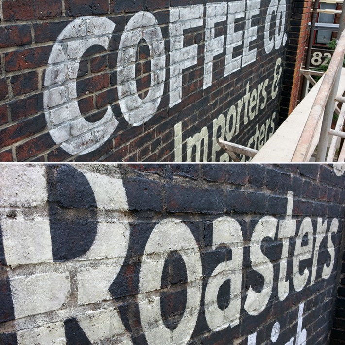 80+ year old “Ghost Sign” renovation, Katsafanas Coffee Co., North Side, Pgh…