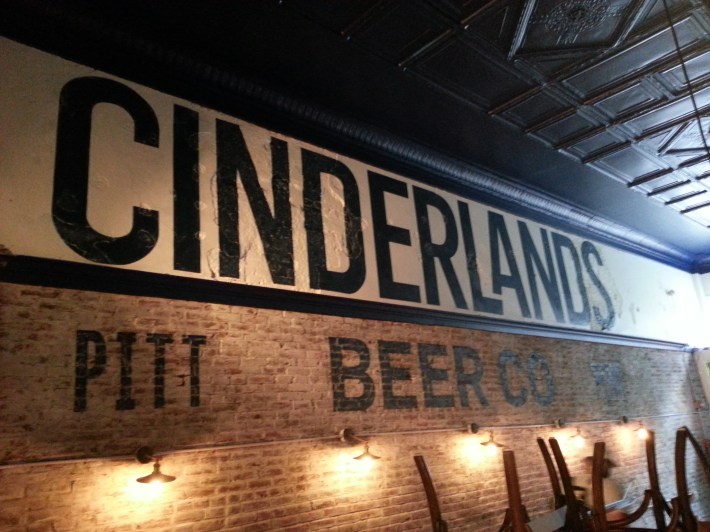 Logo painting on brick and plaster, CINDERLANDS brewpub, Lawrenceville, PGH…