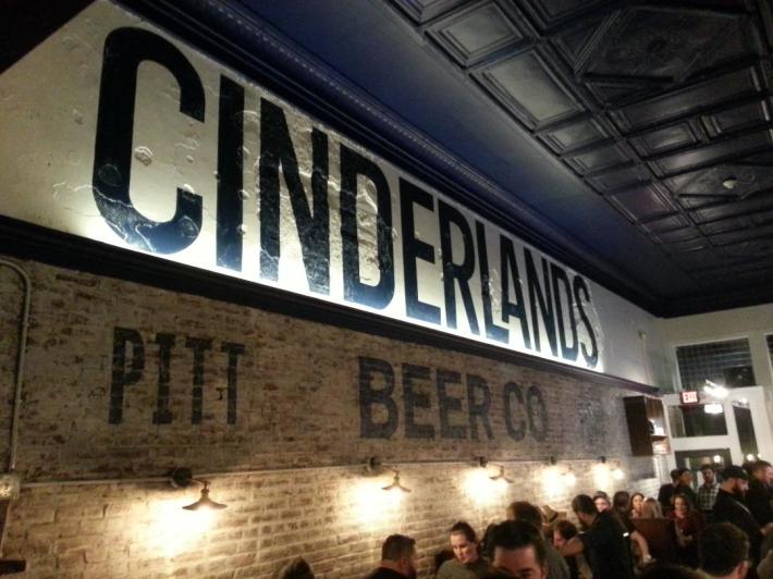 Logo painting on brick and plaster, CINDERLANDS brewpub, Lawrenceville, PGH…