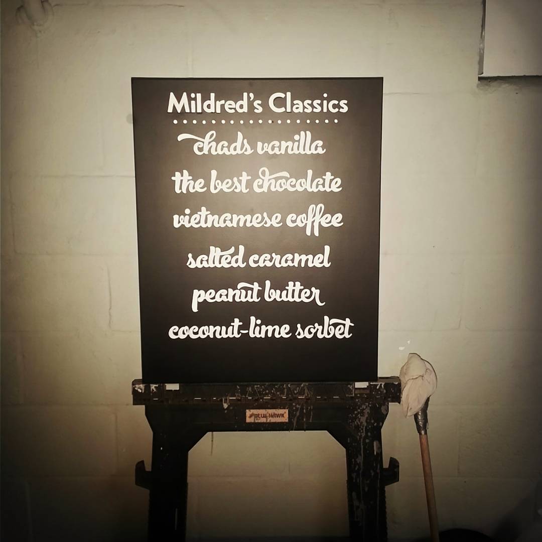 Logo & menu painting for Millie’s Homemade Ice Cream…