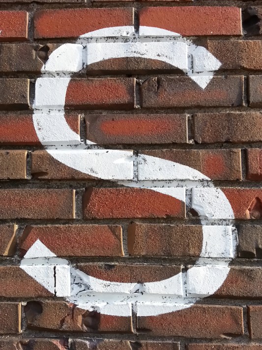 Outdoor hand-painted sign on brick, Federal Galley, north side…