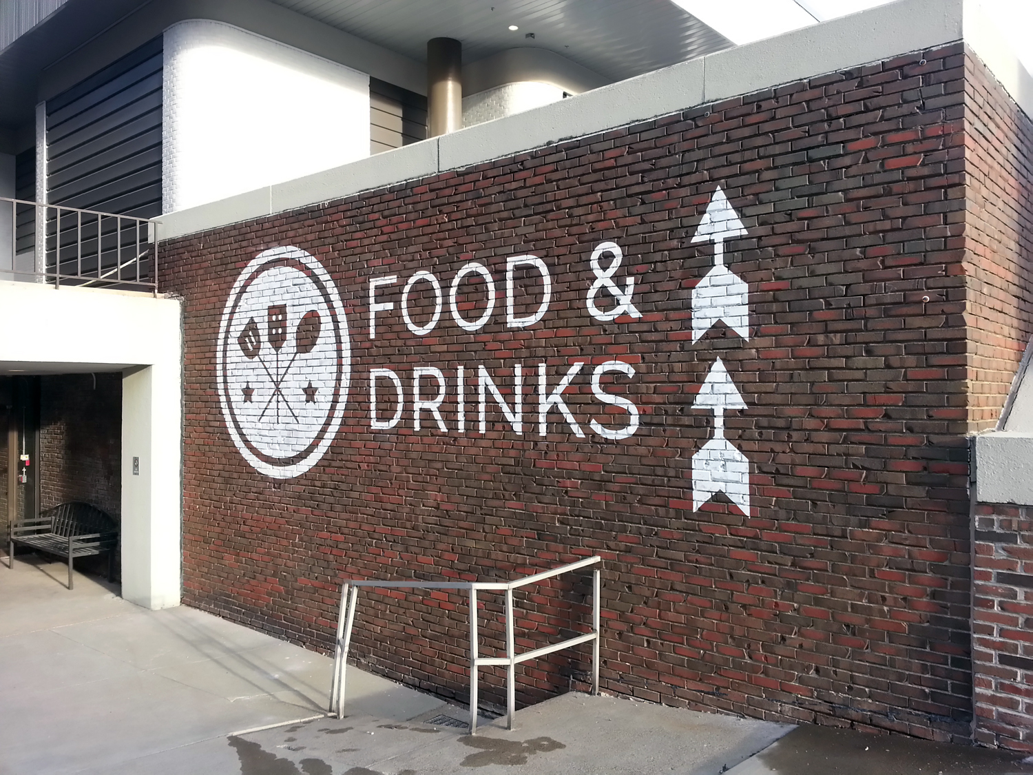 Outdoor hand-painted sign on brick, Federal Galley, north side…