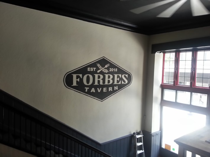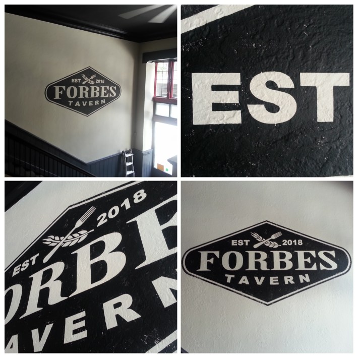 Logo painting over a staircase, Forbes Tavern, Downtown PGH…