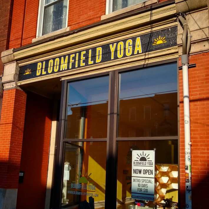 3D sign painting on textured surface, Bloomfield Yoga, PGH…