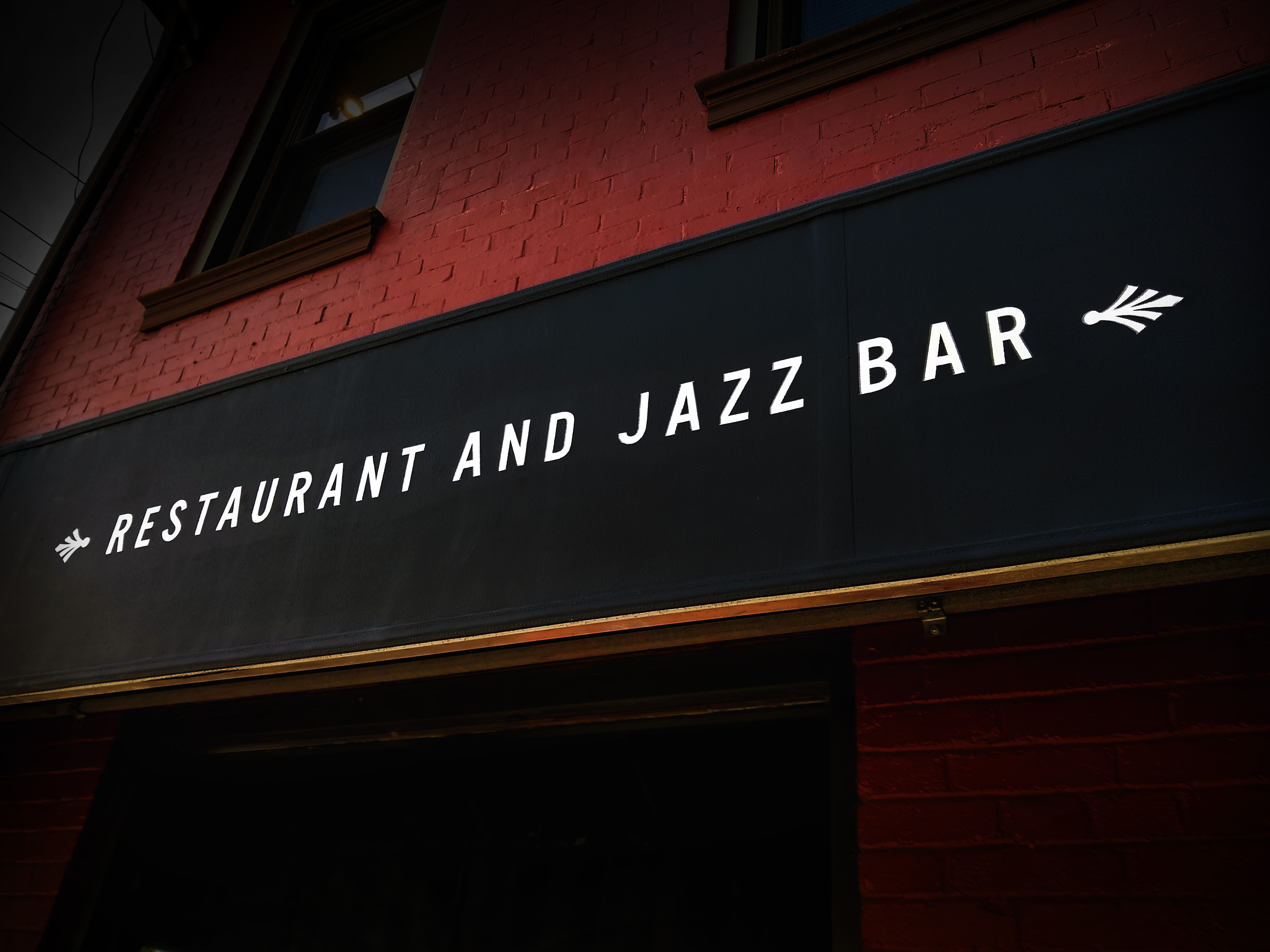 Refurbished canvas awning with hand-painted signs, Con Alma, Shadyside…