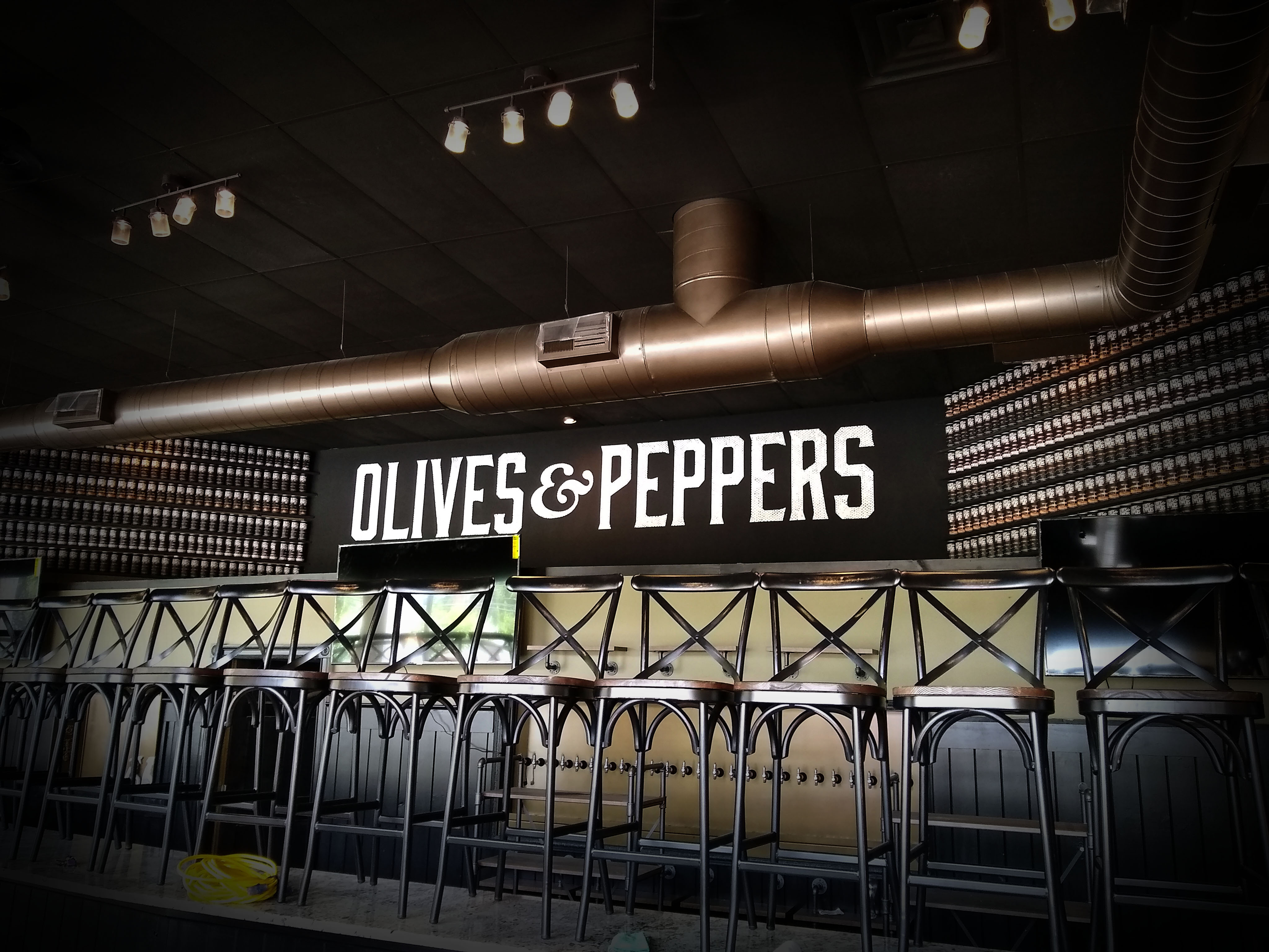 hand-painted texture pattern logo, Olives & Peppers, Trafford, PA…