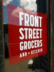 Hand-painted signs on glass, Front Street Grocers & Kitchen