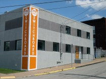 Logo painting on brick and plaster, CINDERLANDS brewpub, Lawrenceville, PGH…